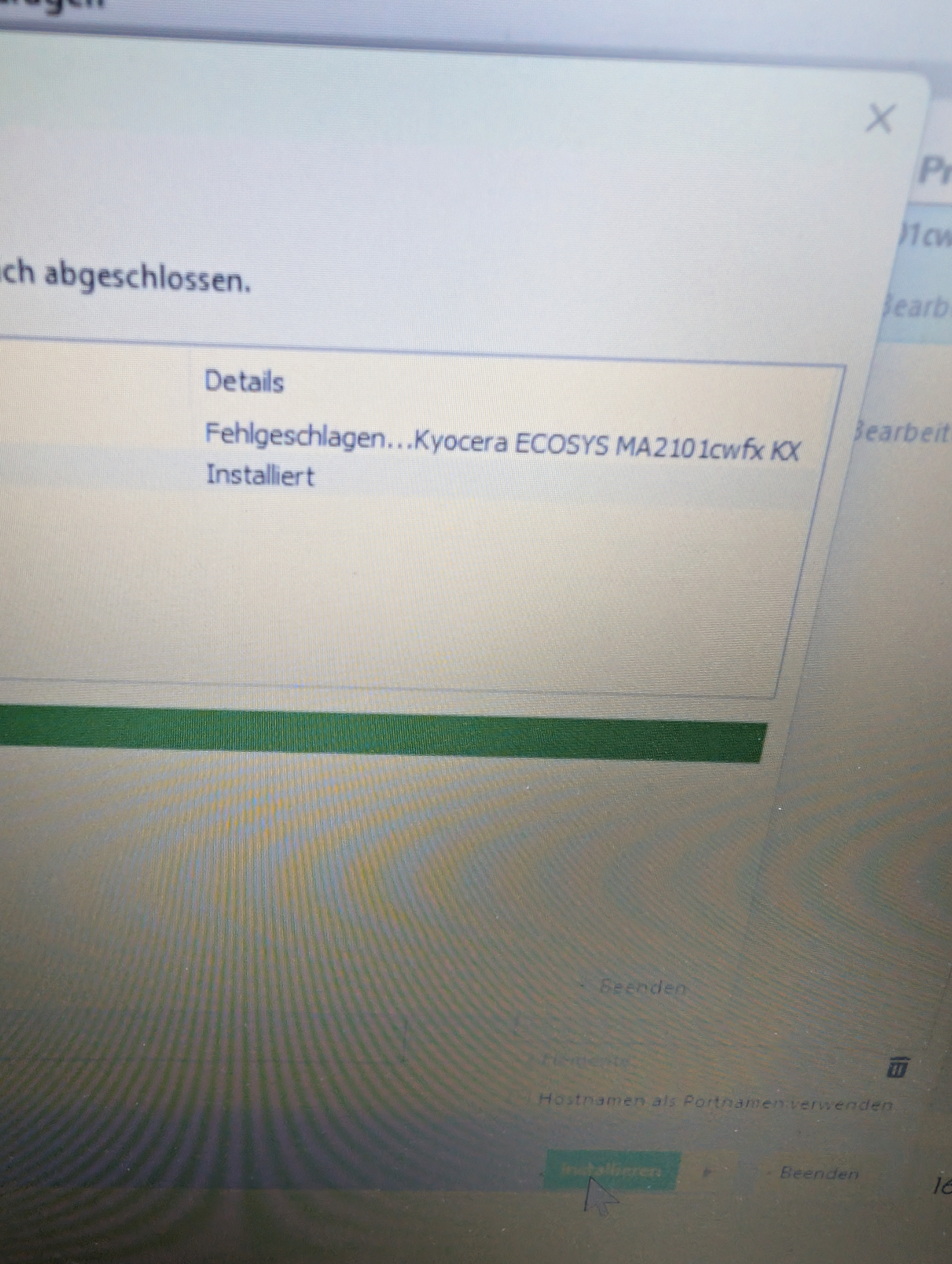 Bekomme das Scheiss Teil nicht ans Laufen. Habe mir das KX Driver Programm runtergalden, Drucker und Treiber rübergezogen zur Installation. Jedoch bricht er die Installation mit einer Fehlermeldung ab.