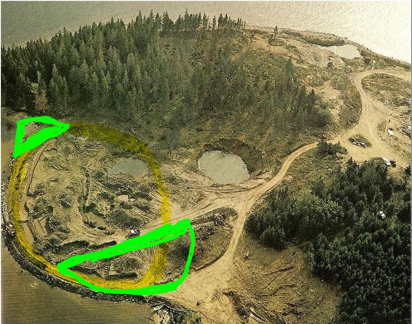Original anzeigen (0,2 MB)Da bin ich in dem, was ich angenommen habe, wohl in den Dunfield-Bereich gerutscht. Dennoch verwunderlich, wenn dort alles umgegraben wurde, dass dort Kokosfasern in der richtigen Tiefe gefunden wurden (vor allem bei dem ganzen schwarzen Einheitsbrei drumrum), obwohl kein fachkundiger Begleiter dabei war.s..zwerg05 schrieb:Schau mal, was Dunfield in smith´s cove angerichtet hat. Der gelb markierte Bereich wurde von Dunfield danach sogar noch tiefer freigelegt. Teilweise hat er metertiefe Gräben gezogen. In diesem gelben Bereich kann theoretisch nichts mehr übrig sein von den Kokosfasern. Das schlimme ist, dass Dunfield den Abraum - sowohl vom Moneypit als auch von smith´s cove bunt gemischt und anschließend wieder in smith´s cove (und anderen Stellen) verteilt hat. Hier müssen natürlich noch Fasern enthalten gewesen sein, aber eben nicht mehr der komplette Teppich wie ihn die Schatzsucher vor Dunflied beschrieben.