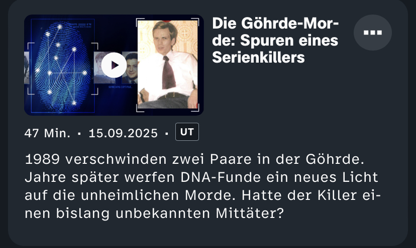 Aber irgendwie waren die Göhrde-Morde ja nicht wirklich eine Serie. Vielleicht weil der Täter sich dann wieder auf andere Methoden verlegt hatte.
