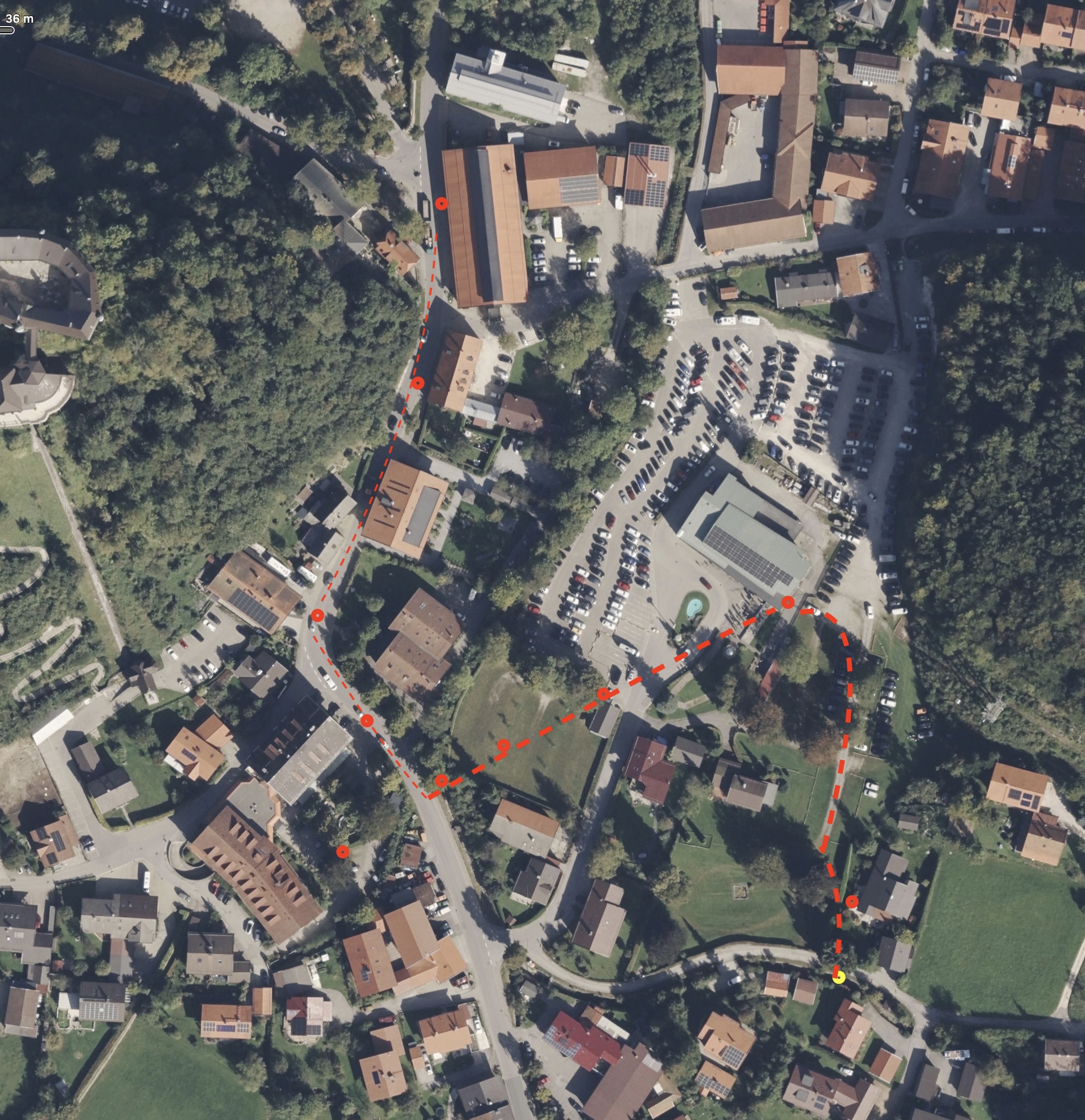 Außerdem deuten die Punkte eine klare Tendenz auf, das Opfer ist in Richtung Osten gegangen. Kein einziger dieser Punkte zeigt eine Bewegung in einen andere Richtung, alle sind mit dem Weg Richtung Kampenwandparkplatz vereinbar. Der Beamte selber spricht auch von einem Richtungswechsel. Zwar sagt er, dass der Punkt 11 auch noch knapp bist zur Kampenwandstraße reichen, aber dabei ignoriert er, dass diesen von ihm selbst behaupteten Richtungswechsel. Würde diese Bewegung durch die schlechtere Ortung vorgetäuscht sein, dann würden man so etwas sehen, wie zwischen den Punkten 4 – 6. Dort ist scheinbar das Opfer auch eine kleiner Strecke zurückgelaufen. Aber das ist bei den Punkten 8 – 11 nicht der Fall.
