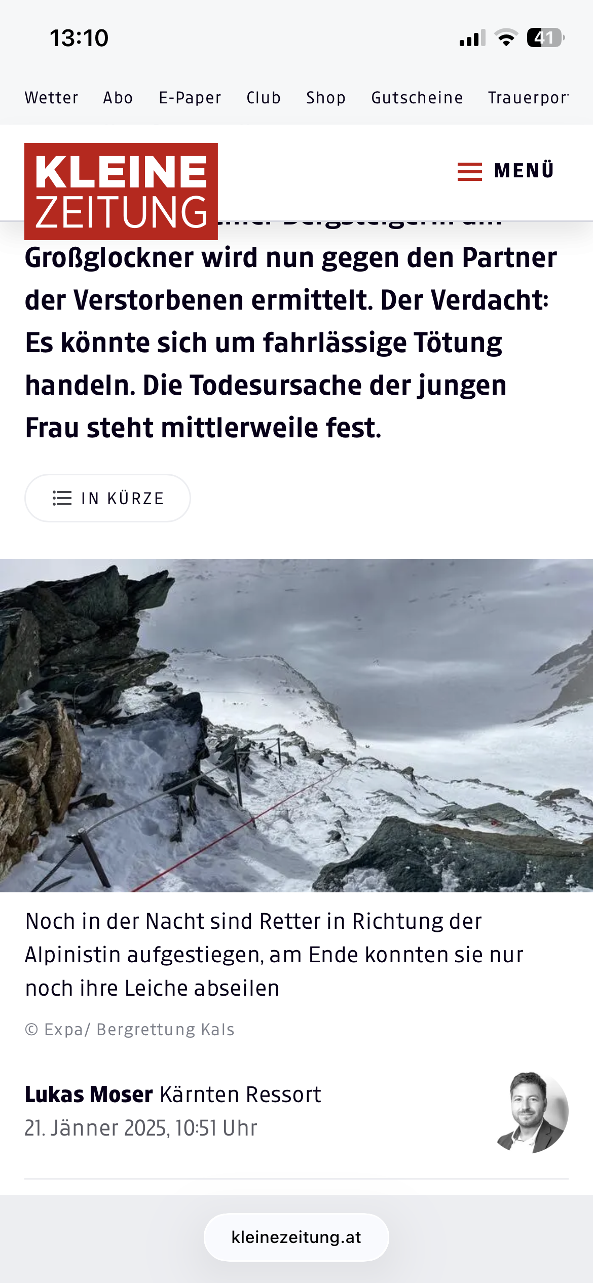 Original anzeigen (2,5 MB)https://www.kleinezeitung.at/kaernten/19276696/polizei-ermittelt-gegen-partner-der-verstorbenen-wegen-fahrlaessigerDa ist eine Stelle rechts auf der ein roter Fleck zusehen ist, ist das Blut oder eine Markierung? Markierungen am Berg sind eher rot weiß gestreift oder?
