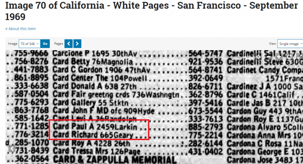Zu " Sue Ballard" : jemand aus Darlenes Adressbuch hat in SF um Umkreis von weniger als einer Meile zu den Verwandten McDuffs gewohnt? Im Umkreis von knapp einer Meile wohnen in SF bekanntlich sehr viele Menschen.