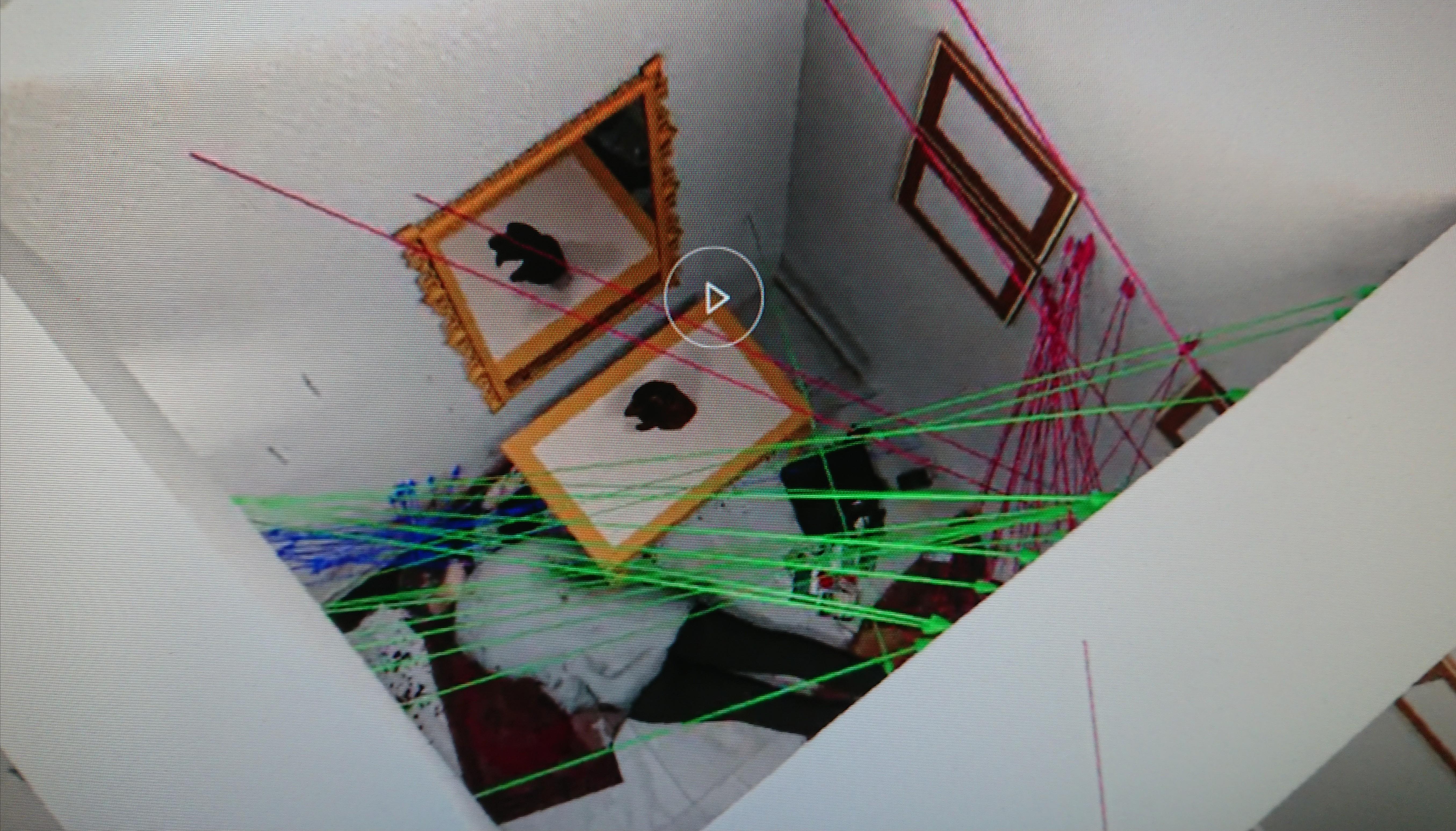 Nach der alternativen Hergangshypothese von Petermann befand sich CB beim Angriff, der zuerst Blutspritzer verursachte, im Bereich des mittleren an der Wand hängenden Bildes unter dem Deckenträger: