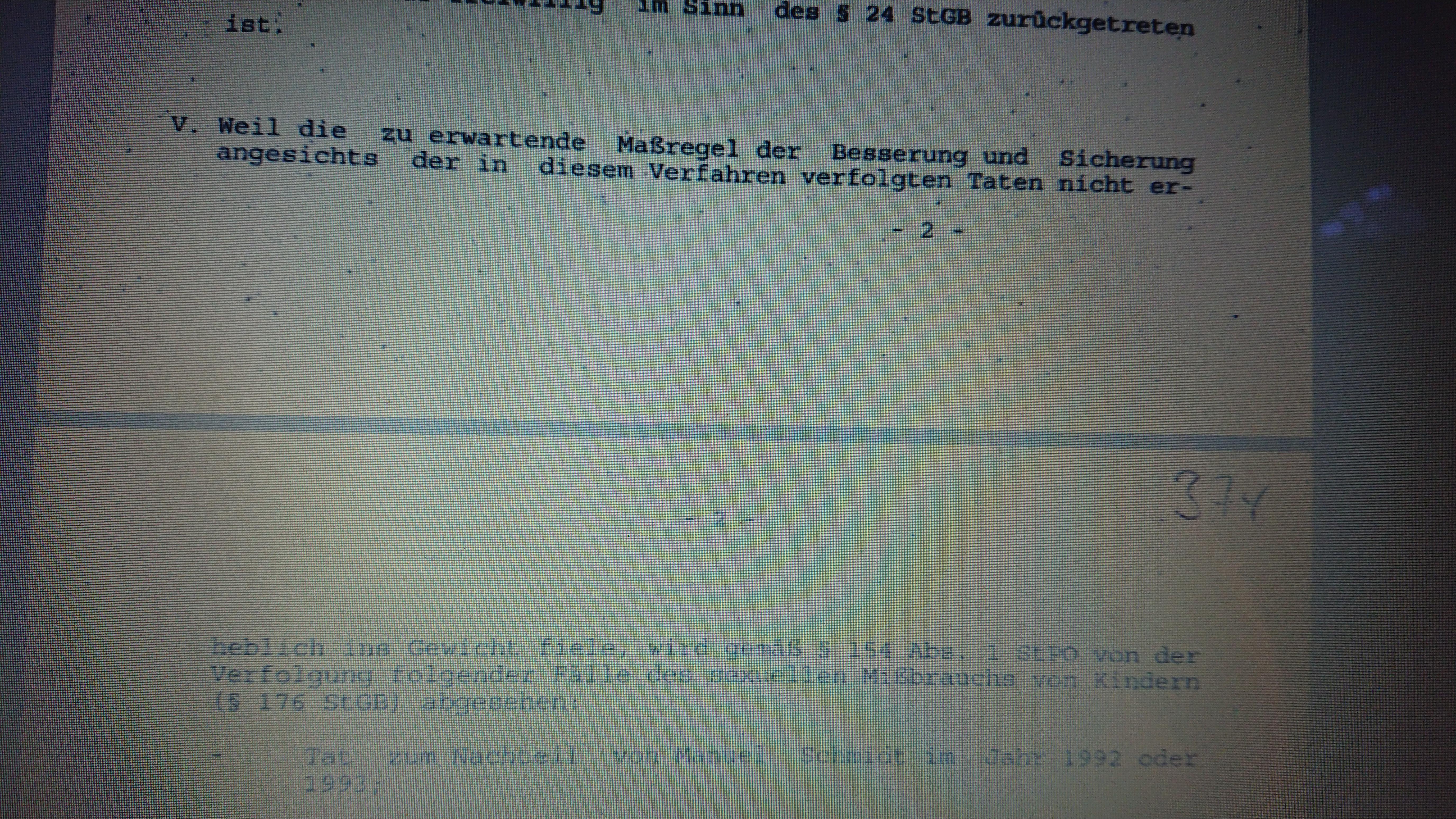 Weiterhin ein Beitrag einer userin, die folgendes zitierte, worin ein sex. Missbrauch an MS in Frage gestellt wird.DerGreif schrieb am 23.01.2019:Zumindest ein strafbarer sexueller Missbrauch an Kindern kann im Verhältnis UK zu MS nicht vorgelegen haben, da MS älter als UK ist (zumindest ein paar Monate). Dh zu dem Zeitpunkt als UK strafmündig war, war MS kein Kind mehr iSd § 176 StGB. Und vorher kämen dann höchstens Maßnahmen der Besserung und Sicherung in Betracht, weil eben UK absolut schuldunfähig gewesen wäre.