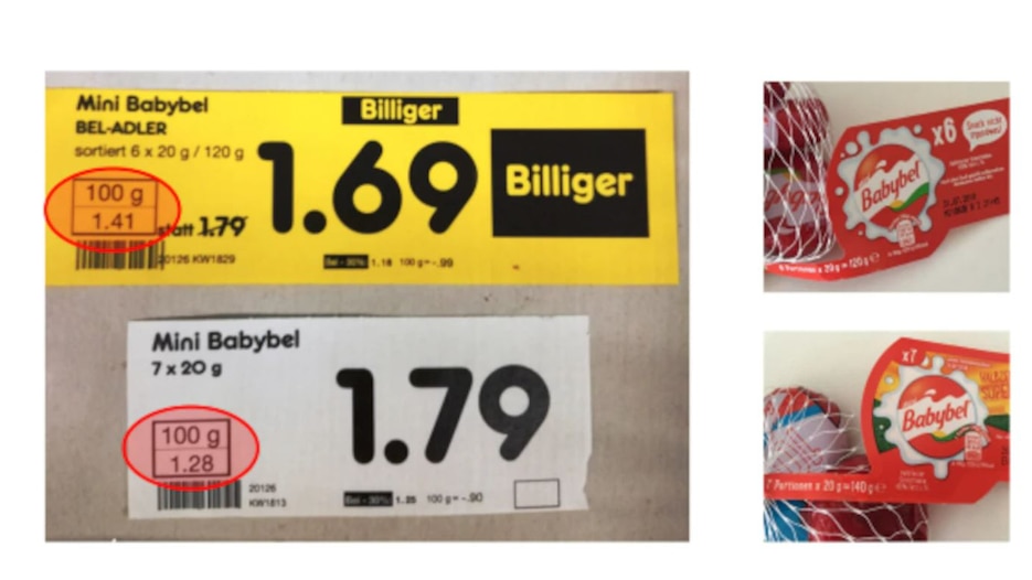 Frau.N.Zimmer schrieb:was heißt denn schätzen oder auswendig lernen? Das ist doch Quatsch. Die Inhaltsangabe steht auf der Verpackung, der Preis pro 100g/ml am Regal. Lesen und entscheiden, ob man den Preis für dieses Produkt zahlen will, oder nicht.