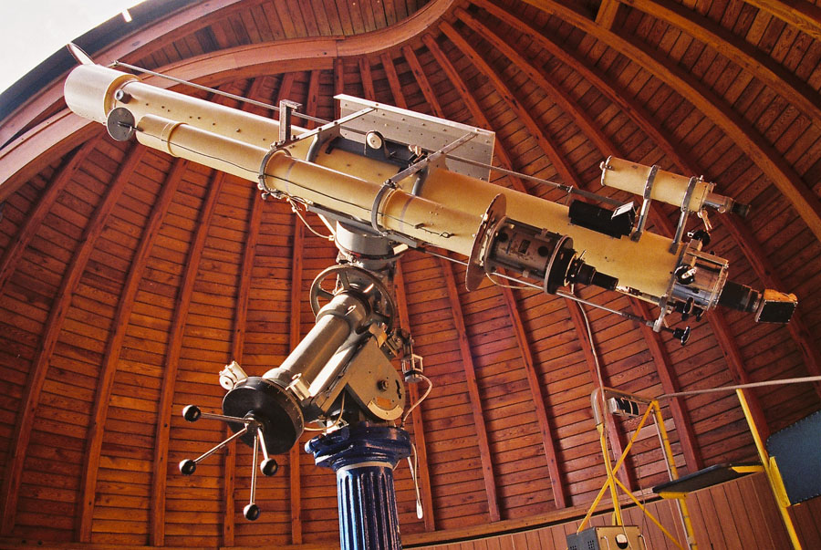 Ioan richtet das Teleskop anders aus und schaut nochmal durch...(Ioan: ) "Wenn ihr jetzt durchschaut, seht ihr den Saturn und seine Monde in 368facher Vergrößerung."