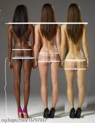 Bzw die Schwarze Frau hat den kürzesten Oberkörper, die Asiatin den größten.