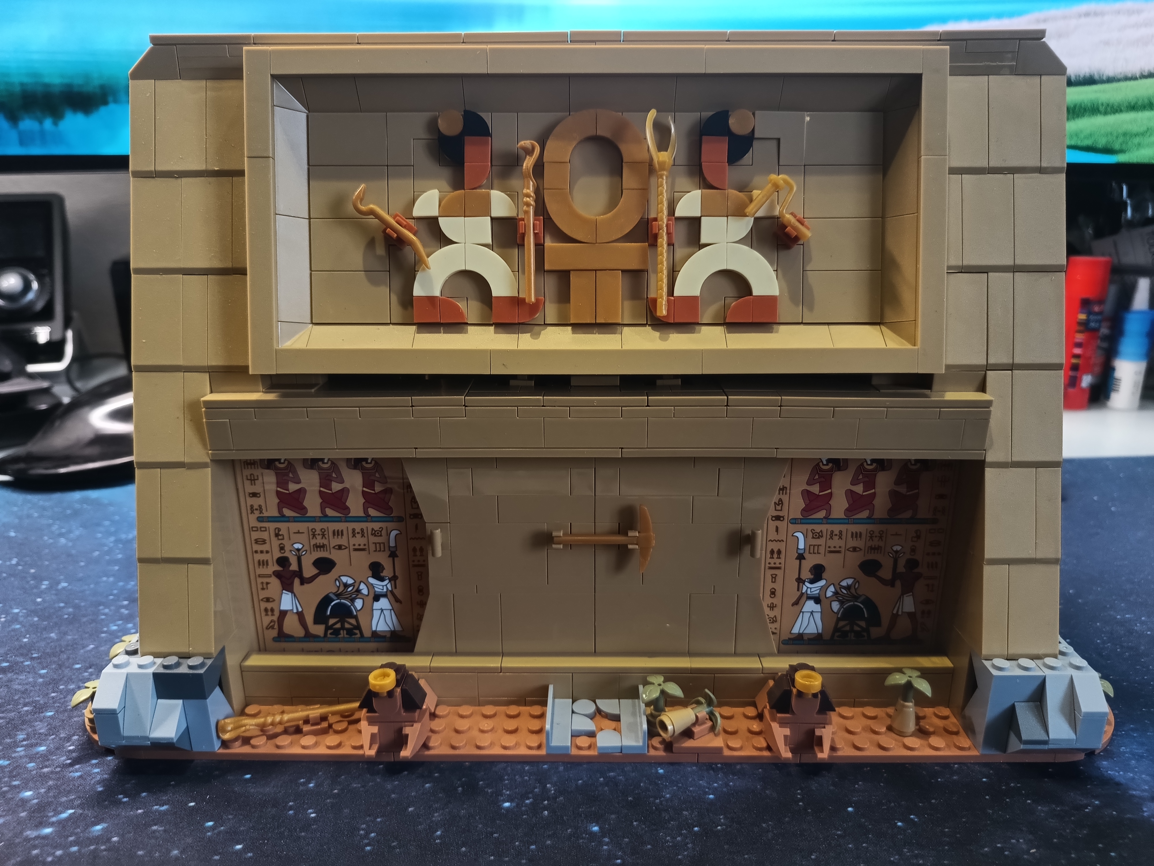 Es gibt einen Bogen der größer als DIN A4 ist mit Stickern für das Set. Die Bauanleitung ist mit dem Computer erstellt worden und verdeckt oft Teile und man muss nacharbeiten. Also beim Bau sollte man immer ein offenes Fenster haben durch das man es werfen kann. Ist der Frust vorbei sieht es aber ganz nett aus. So ehrlich muss man sein.
