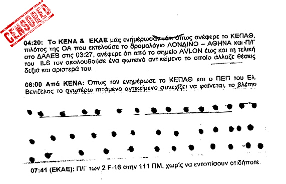 Nachdem eine erste unzensierte Version der Unterlagen der griechischen Luftaufsicht bestätigt, dass das Objekt auch von den militärischen Luftraumkontrolleuren visuell bestätigt werden konnte (Abschnitte 6:00 bis 7:41) wurde dieses Dokument schlussendlich um genau diese Zeilen zensiert. Eine Situation die selbst verschwörungskritische Experten an den Versuch einer Vertuschung glauben lässt.