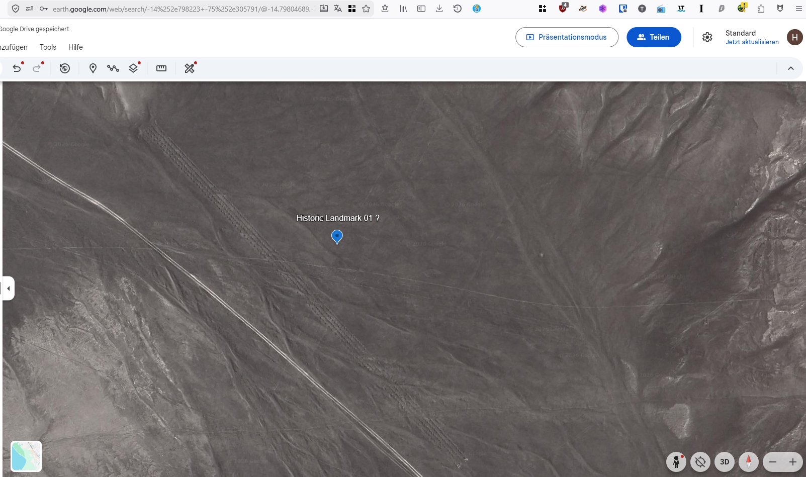 1. Wenn diese Linien Landebahnen wären, und von einer prähistorischen Zivilisation geschaffen wurden, müssten sie wirklich uralt sein. Wir sprechen hier also von sehr vielen Tausenden von Jahren oder gar Millionen von Jahren. Denn sonst würde man viel mehr davon und überall auf der Welt finden. Das Phänomen ist aber lokal begrenzt. Wenn es eine Zivilisation erschaffen hätte, welche technisch soweit fortgeschritten wäre um Landebahnen zu benötigen. Müsste man Reste auf der ganzen Welt finden oder nicht?