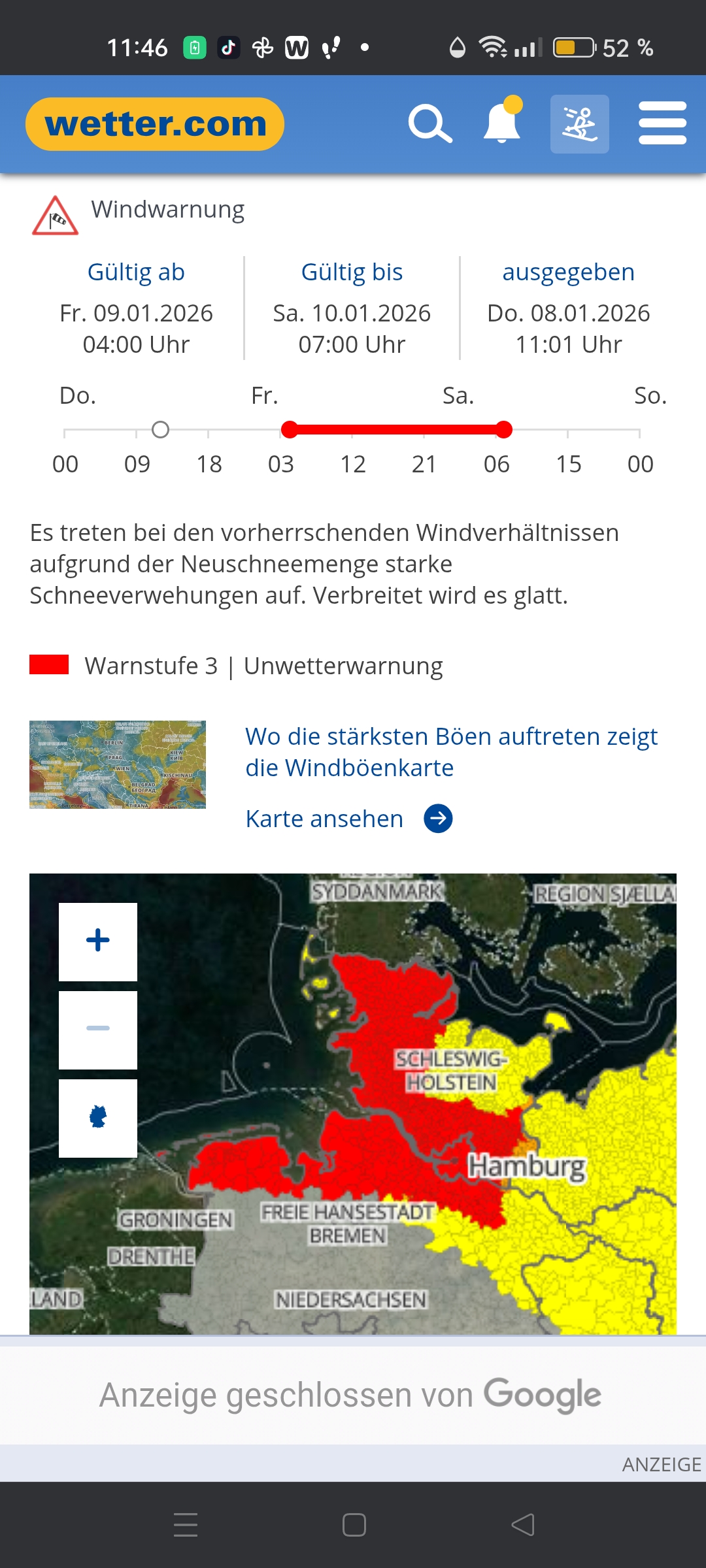 08.01.2026 um 11:54Aktuell höchste Warnstufe für den Norden.