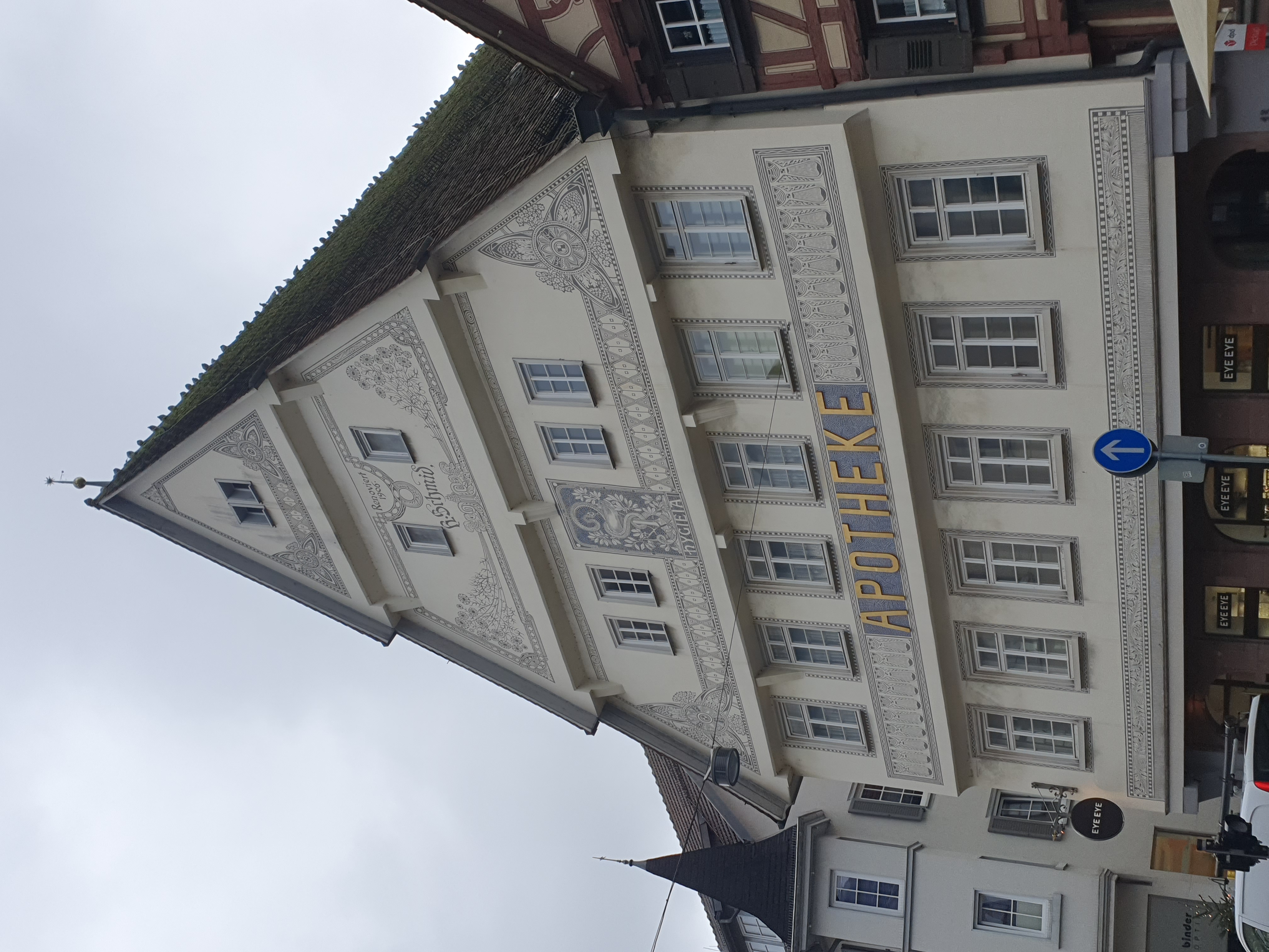Der mächtige Giebel der Schmid´sche Apotheke ragt in die Marktstraße hinein. Die Geschichte dieses markanten Gebäudes, das zum Glück vom großen Stadtbrand 1893 verschont blieb, kann vorläufig mit Sicherheit nur bis zur Mitte des 18. Jahrhunderts zurückverfolgt werden.Quelle: https://www.nagold.de/de/Freizeit-Tourismus/Nagold-entdecken/Sehenswuerdigkeiten/Sehenswuerdigkeit?view=publish&item=tripDestination&id=4