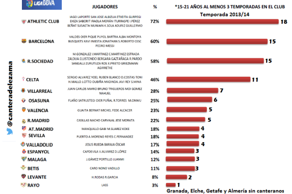 Erst vor wenigen Tagen hab ich irgendwo gesehen, dass Athletic in der spanischen Liga die meisten Nachwuchsspieler einsetzt, noch vor Barcelona.Butterbirne schrieb:Das muss man erstmal schaffen was die geleistet haben, ich glaube es gibt weltweit keine bessere Jugendarbeit.