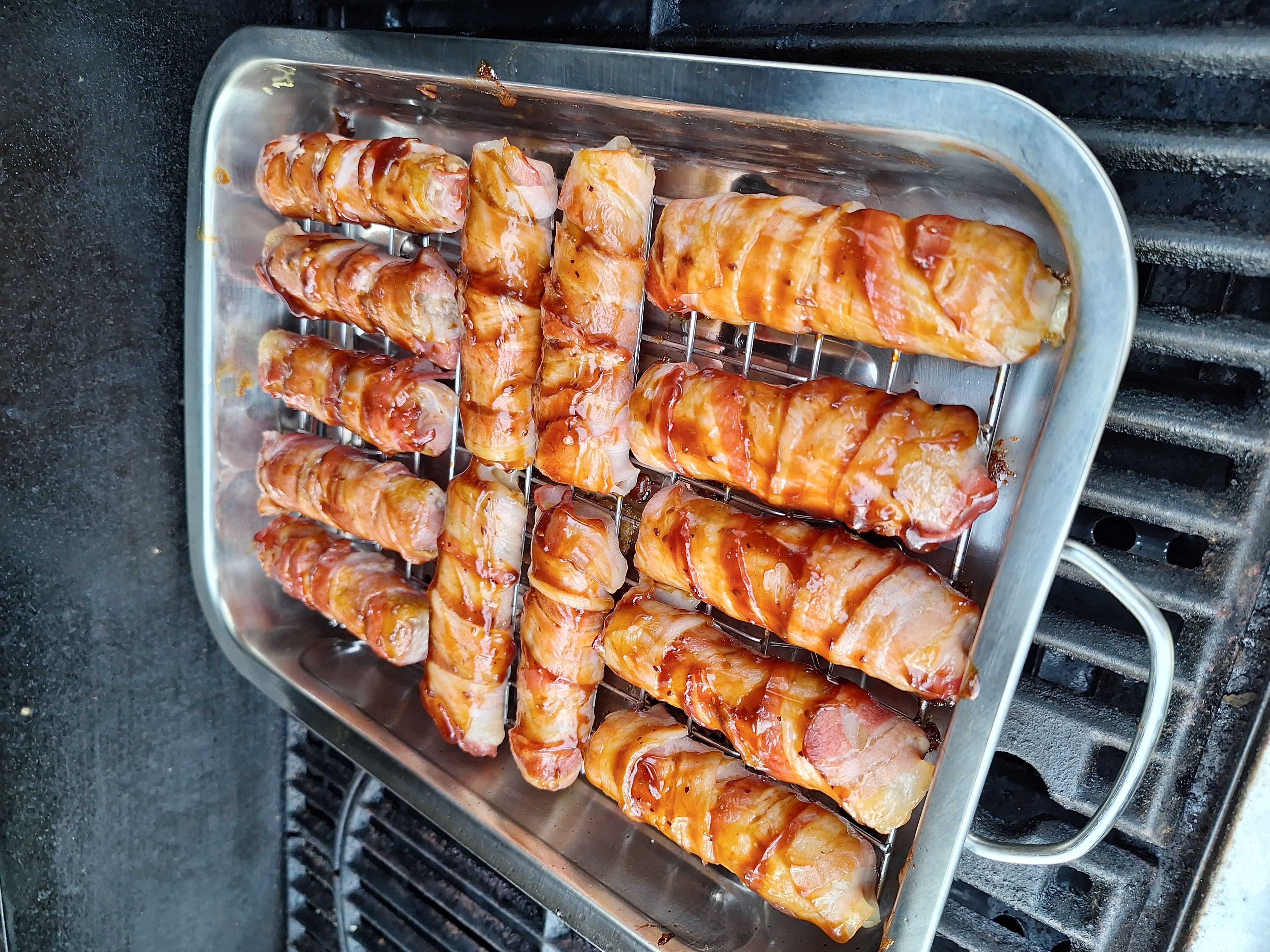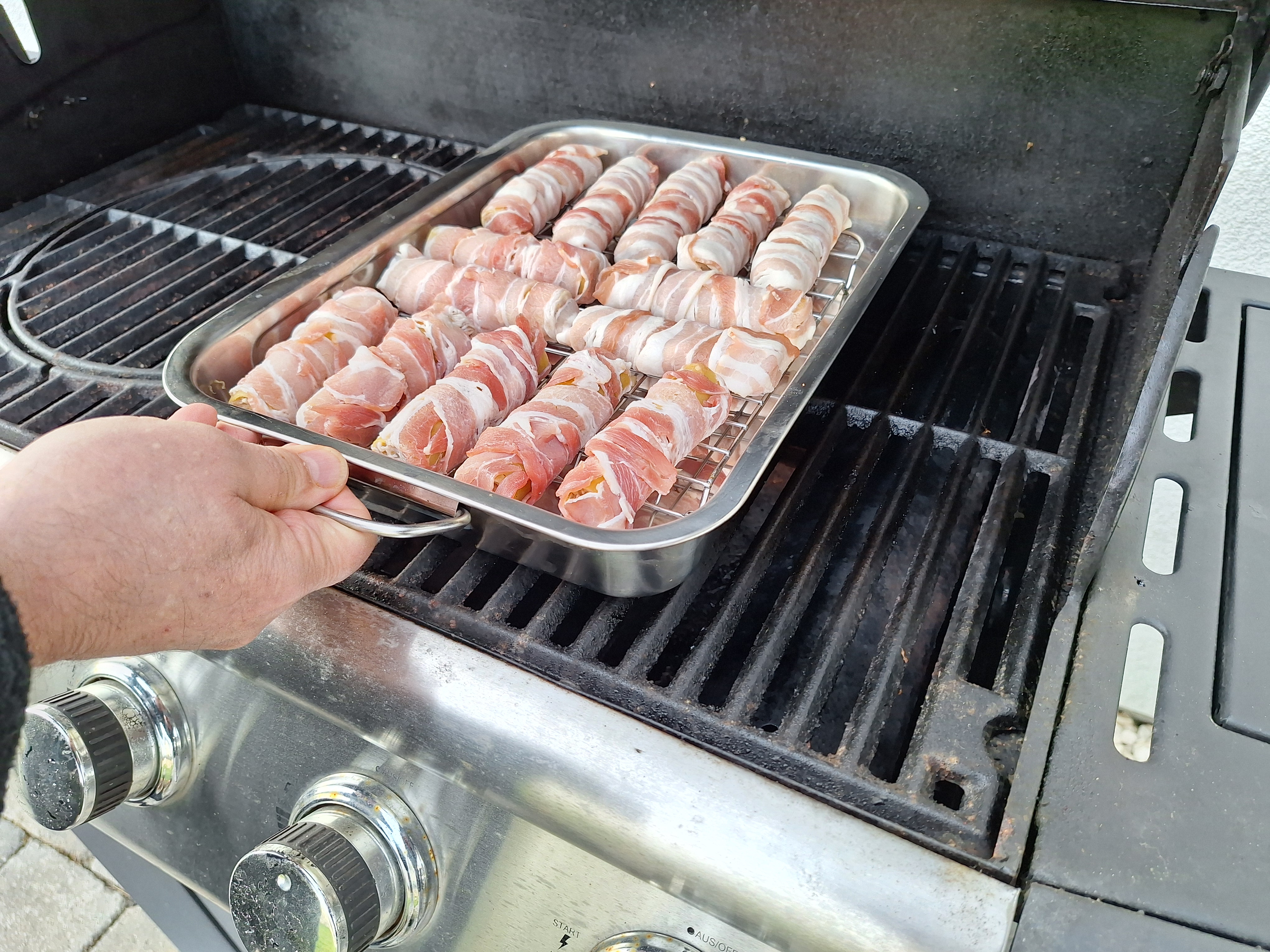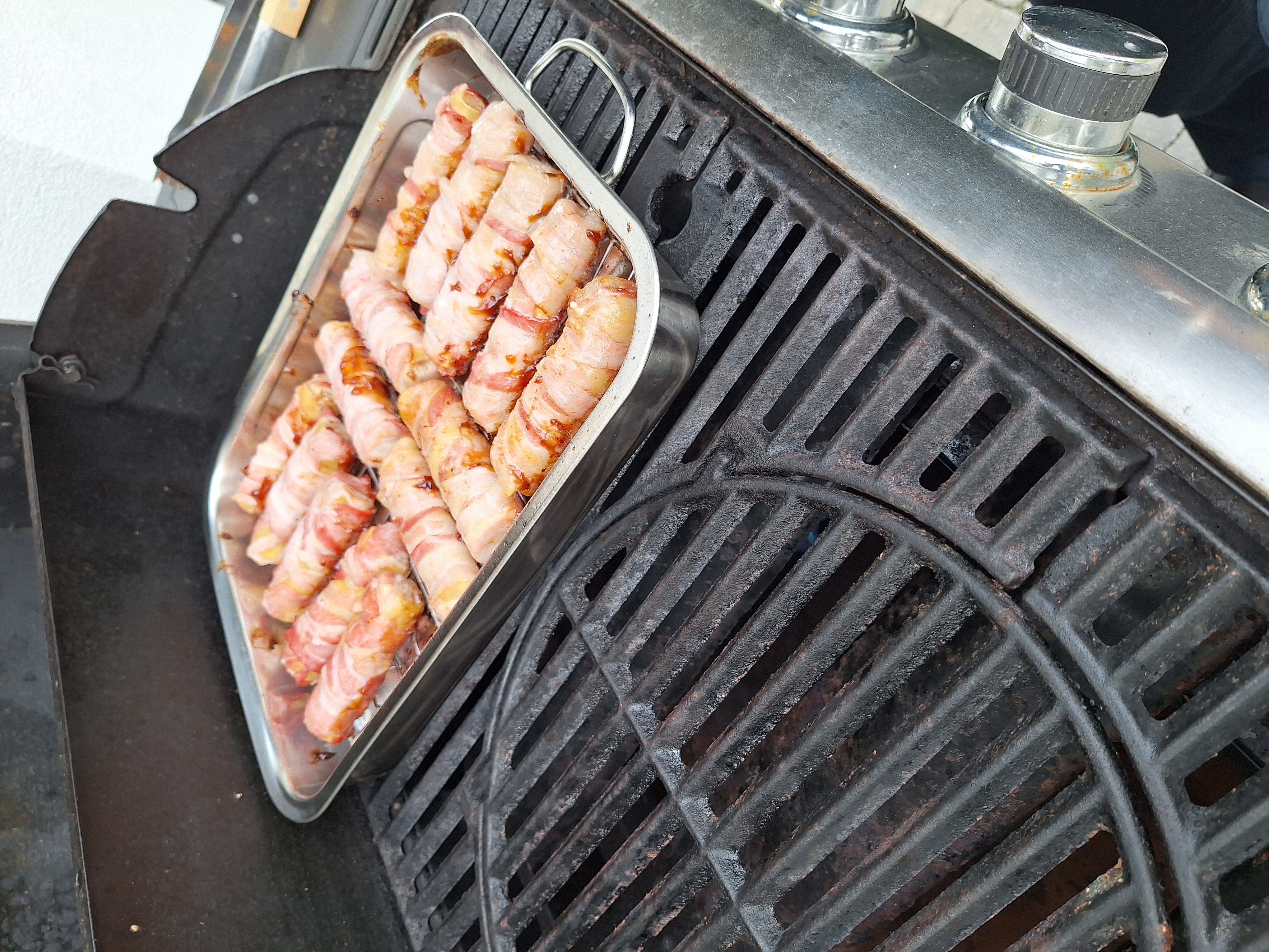 06.03.2026 um 19:08Vermutlich hilft da der geschlossene Grill, um sie zu dämpfen?nairobi schrieb:Da werden Canneloni mit einer gewürzten Hackfleischmasse gefüllt, mit Bacon umwickelt und dann im geschlossenen Grill eine halbe Stunde gegart.