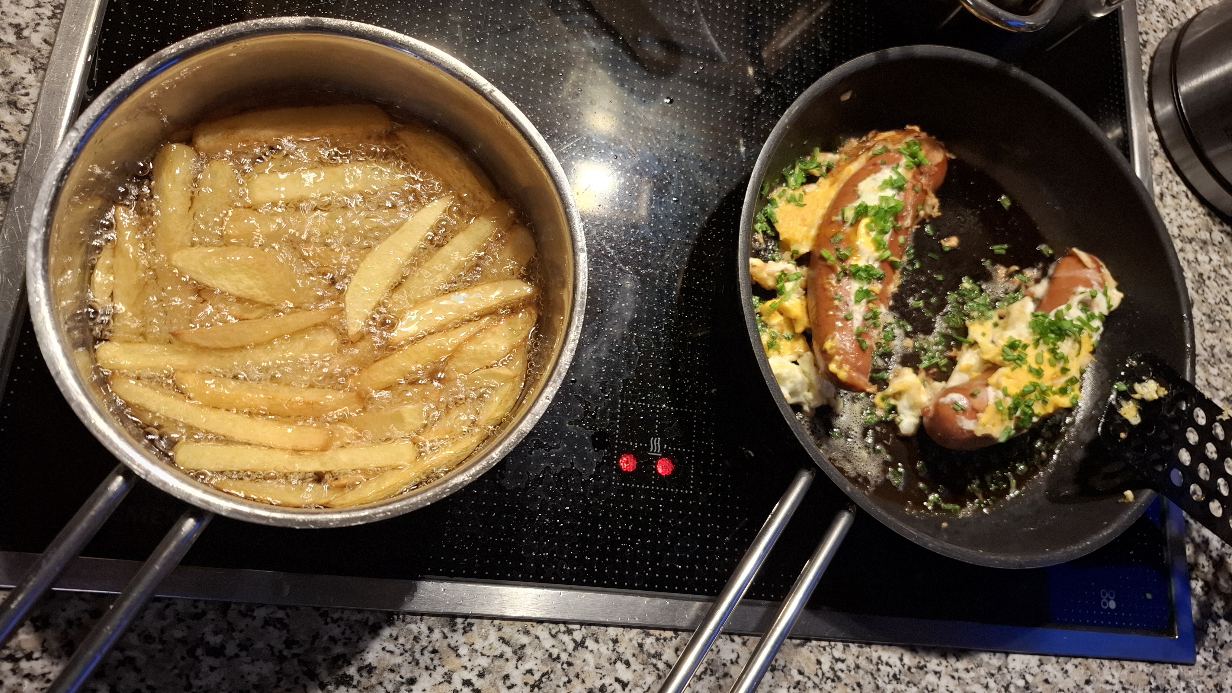 Normalerweise gebe ich ins Chili keine grünen Bohnen. Aber warum auch nicht? Chili, genauso wie Reispfanne, sind Gerichte die ich je nach Bedarf variiere, und in die schonmal das ein oder andere zusätzliche Gemüse kommt wenn vor einer Reise der Kühlschrank geleert wird.