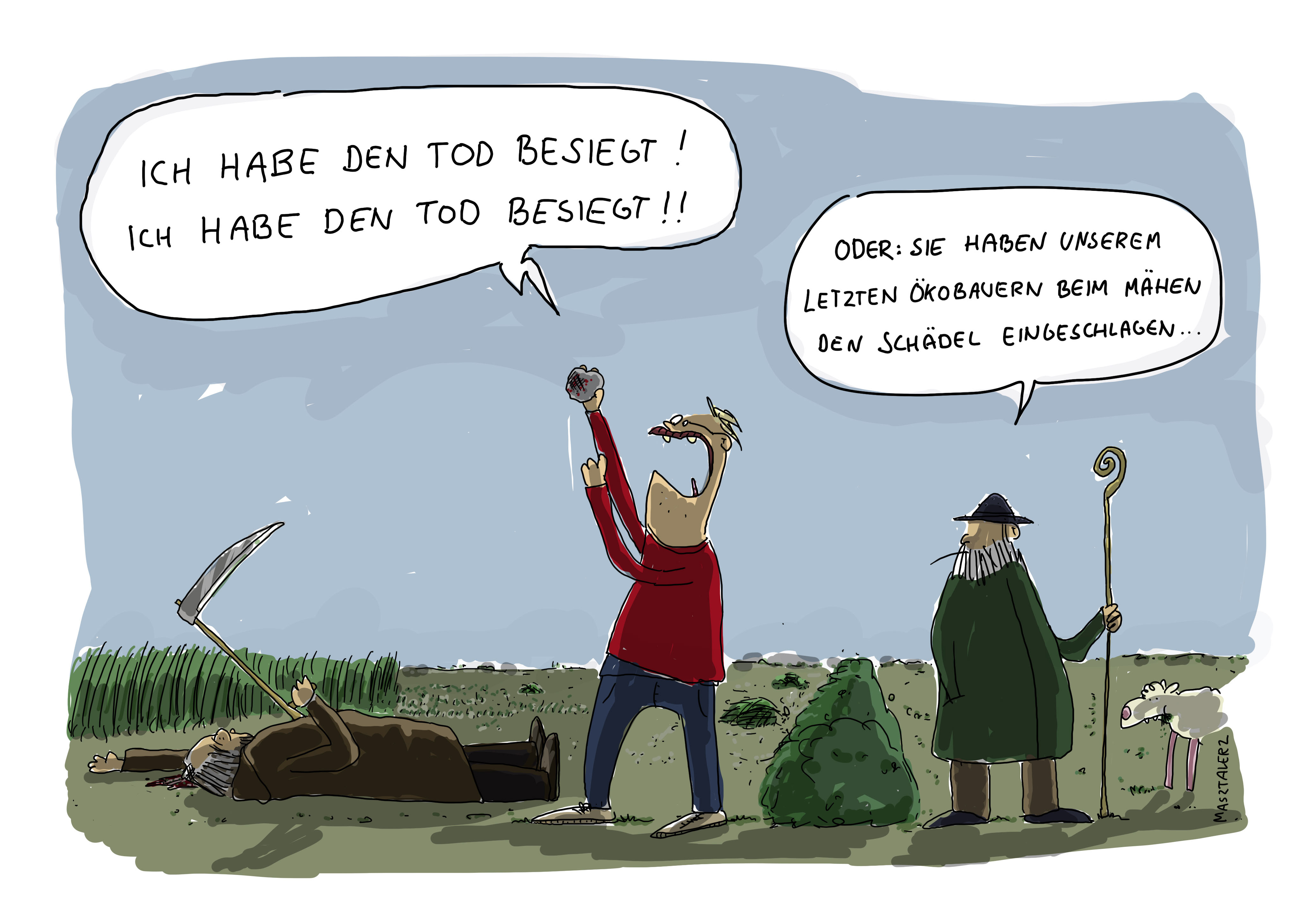 Das ist echt ziemlich schwarzer Humor, aber einfach nur
