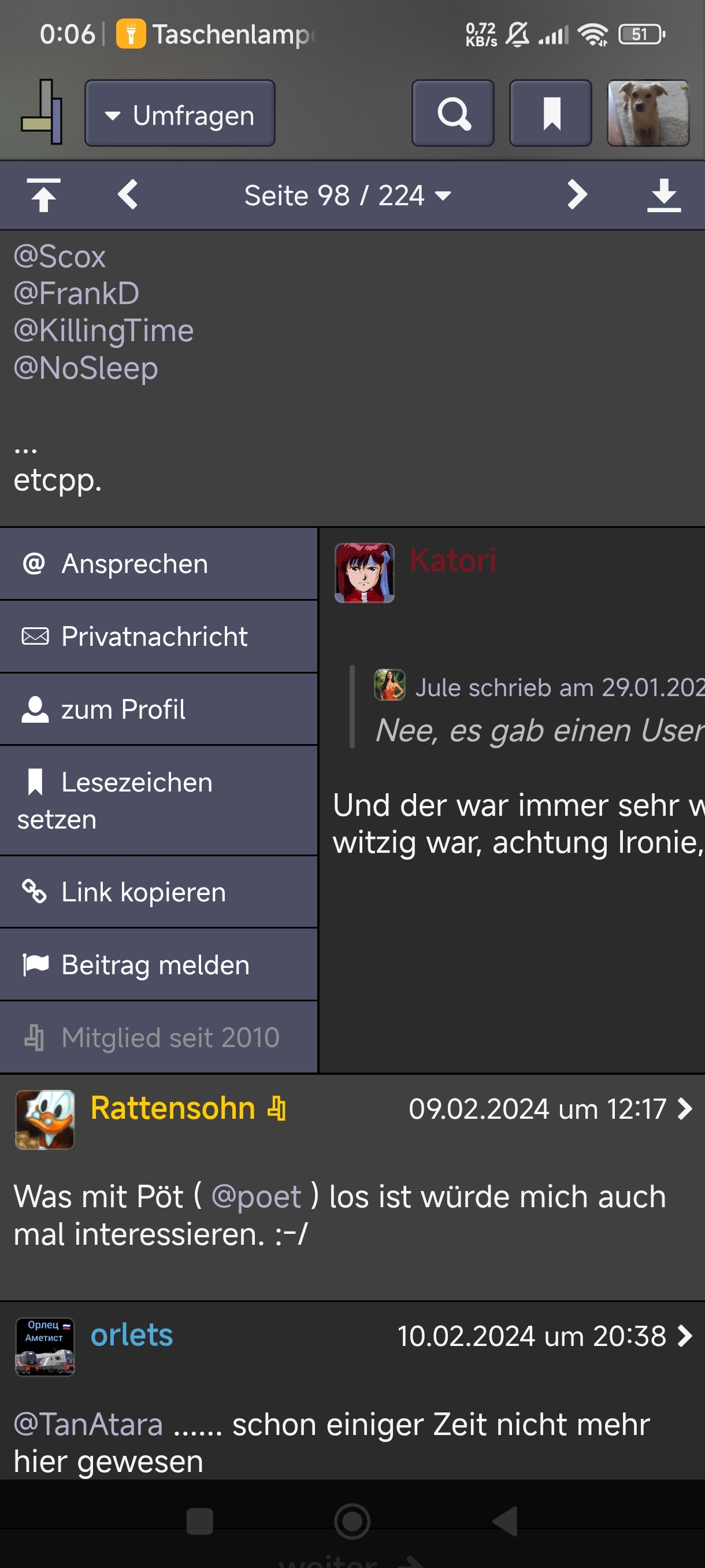 Du kannst Katori nicht mehr über sein Profil anschreiben, weil er das so eingestellt hat. Aber wenn du auf einen seiner Beiträge klickst, kannst du ihm weiterhin eine PN senden.
