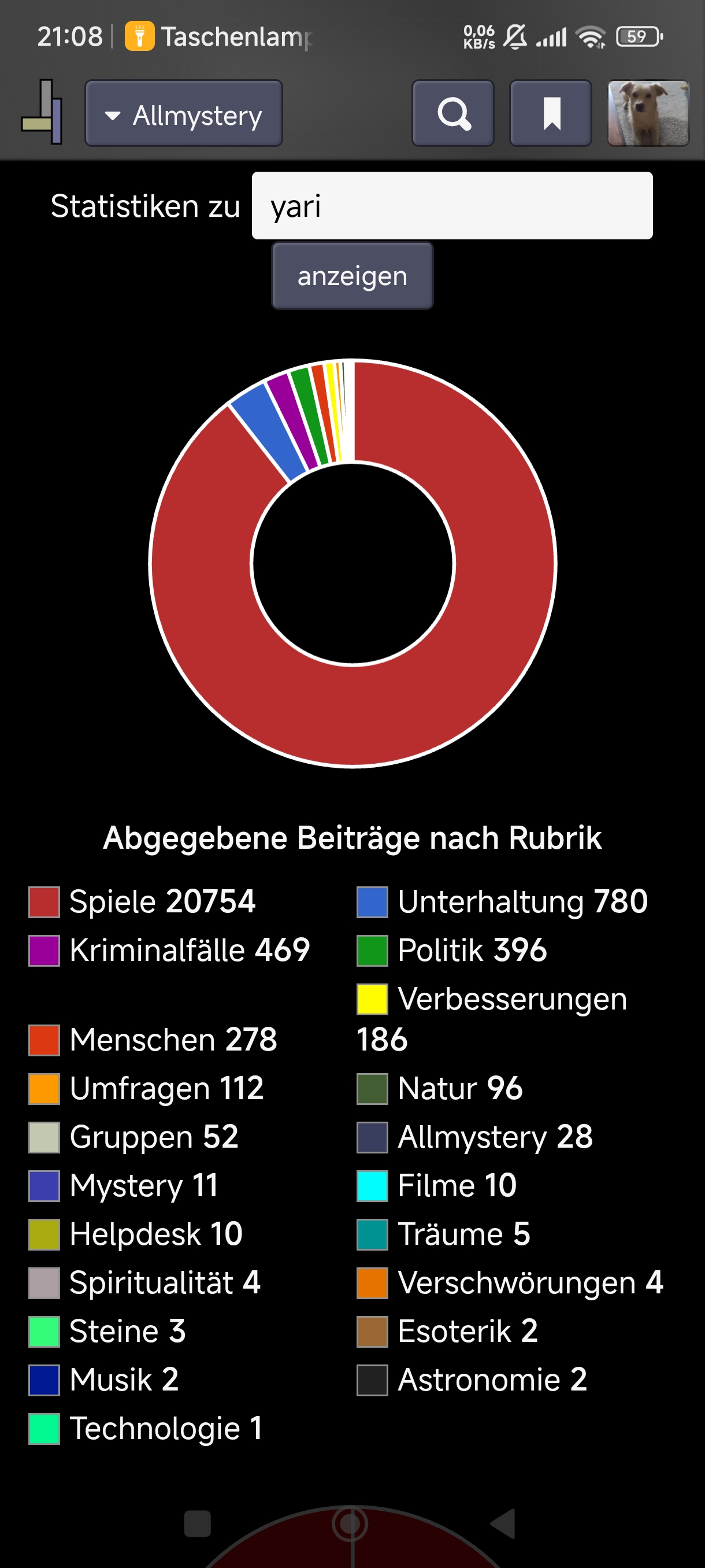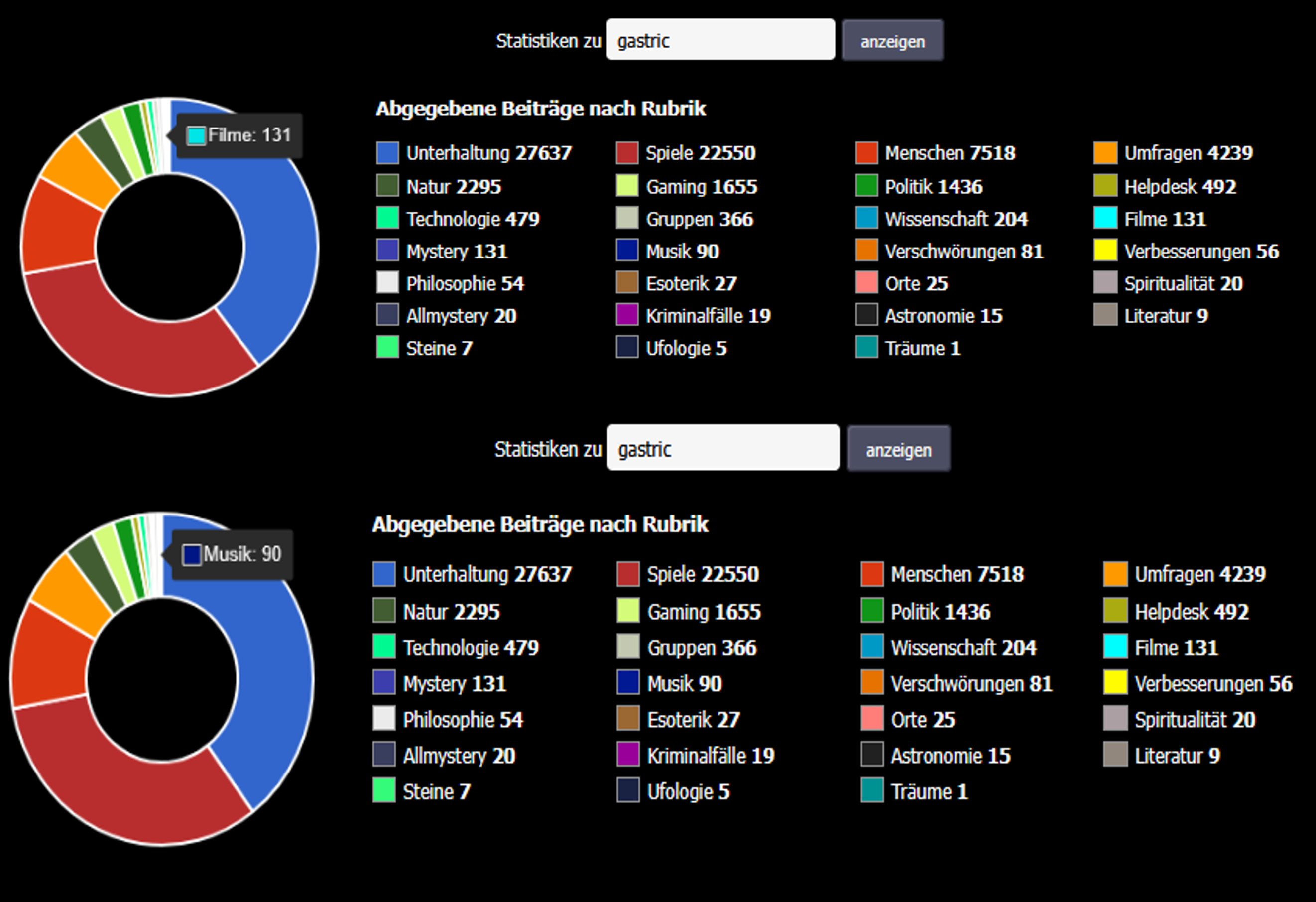 30.11.2025 um 13:25Mich interessiert in welchen Rubriken ihr hier im Forum am aktivsten seid. Wie viele Beiträge habt ihr in eurer Leiblingsrubrik geschrieben? Sieht es bei euch ausgeglichen aus oder sticht eine oder mehrere Rubriken besonders hervor?